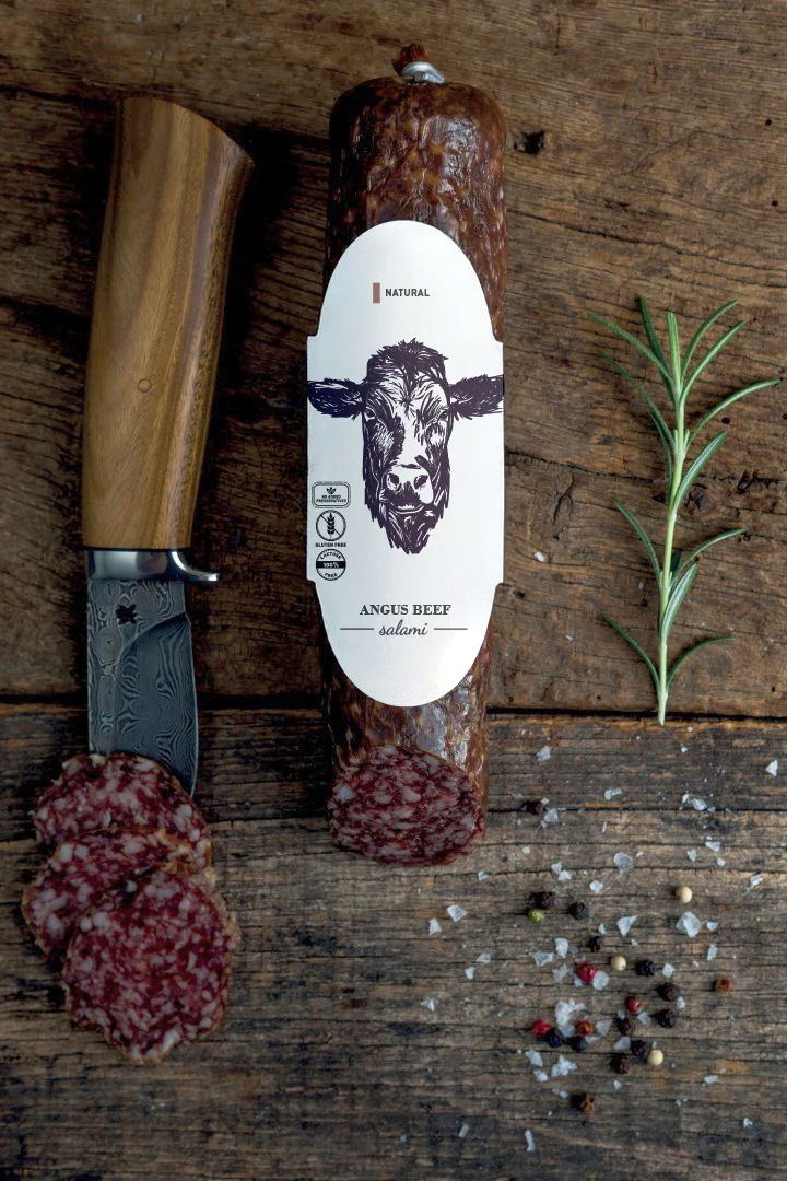 Mit unserer Angus-Salami-Kollektion bringen wir Weltklasse-Qualität auf Ihren Tisch. Dieses premium, außergewöhnlich marmorierte Rindfleisch wird nach traditionellen Methoden verarbeitet, wodurch die sorgfältig ausgewählten Gewürze ihr Aroma durch den natürlichen Fettgehalt des Fleisches voll entfalten können.