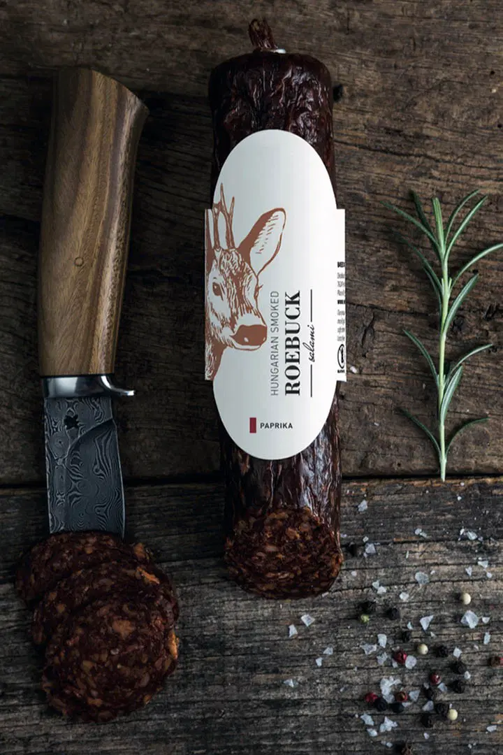 Mit unserer Rehbock-Salami-Produktlinie folgen wir traditionellen ungarischen Rezepten, indem wir das Fleisch gesunder, wildlebender Tiere mit Schweinespeck verarbeiten – dadurch entfalten sich die Aromen der unter Flüssigstickstoff vermahlenen Premium-Gewürze noch intensiver.