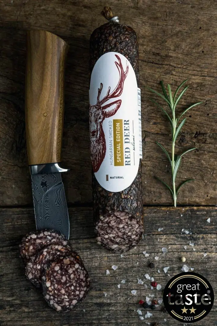Die angenehm seidigen Noten stammen vom Talg, und die herzhaften Aromen vom ausgewählten Premiumfleisch von frei lebenden Hirschen, das zusammen mit verschiedenen Pfeffersorten gewürzt ein einzigartiges gastronomisches Erlebnis bietet.